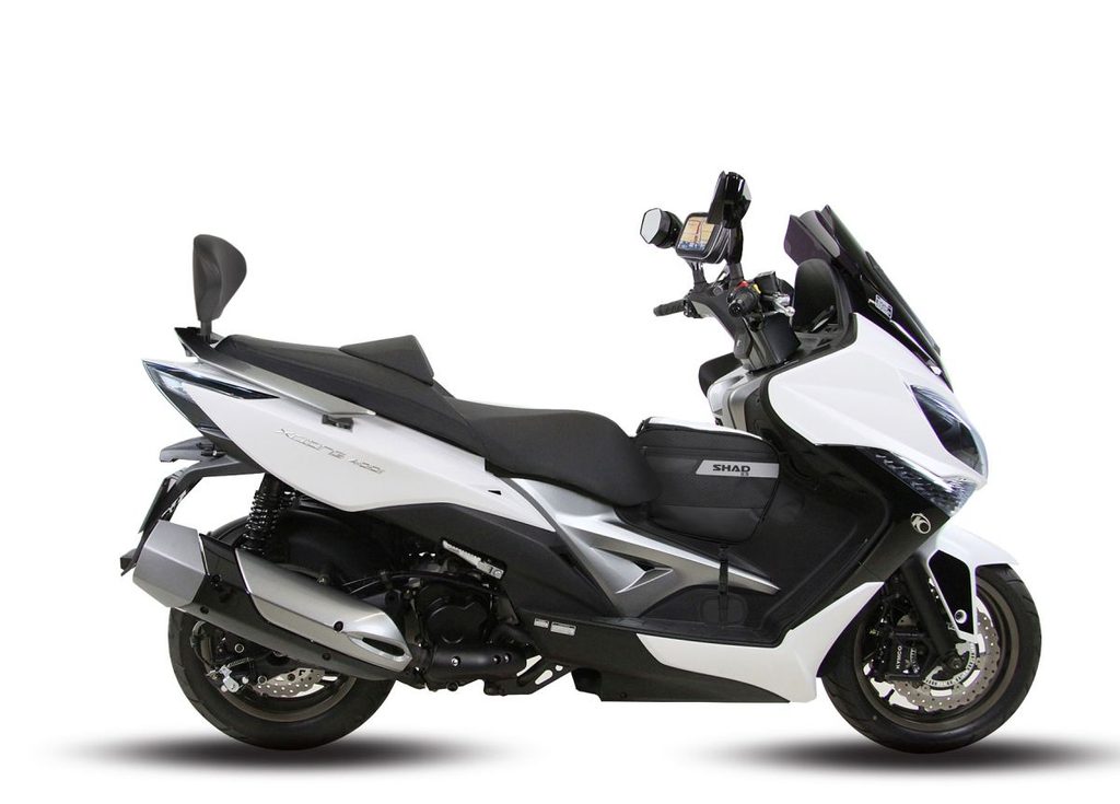 Taška pro skútr SC25 do prostoru mezi nohy je vybavena 2 postranními kapsami a vejde se do ní přilba. V horní části naleznete průhlednou dotykovou kapsu, do které můžete vložit mapy, tablet nebo GPS.
