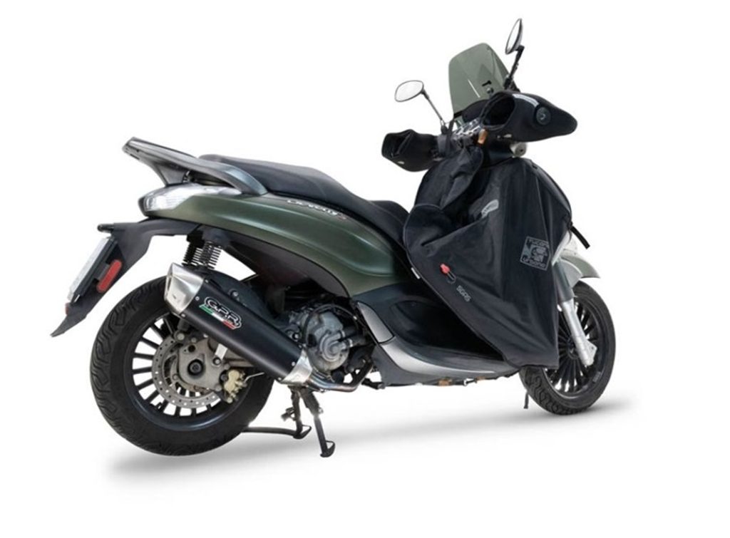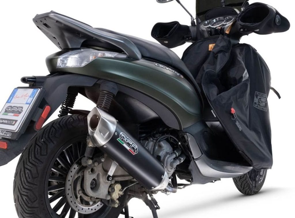 Tlumič výfuku skútru FURORE-X od společnosti GPR má černé hliníkové tělo s krytkami INOX 304 vyrobenými CNC obráběním. Má keramickou povrchovou úpravu, která odolává vysokým teplotám, a eliptický tvar o rozměrech 90 x 120 mm.