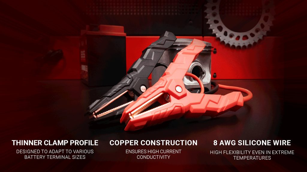 Tento zdroj je dodáván s chytrým kabelem, který zajišťuje připojení odolné proti jiskrám. Dá se vložit do jakéhokoli kufru motocyklu, batohu pro dobrodruhy nebo studentské tašky. Zajistí, že vždy nastartujete svá vozidla a nabijete svá mobilní zařízení kdekoliv a kdykoliv. Funkce svítilny poskytuje 3 režimy blikání (SOS, Strobe a normální stálé světlo).