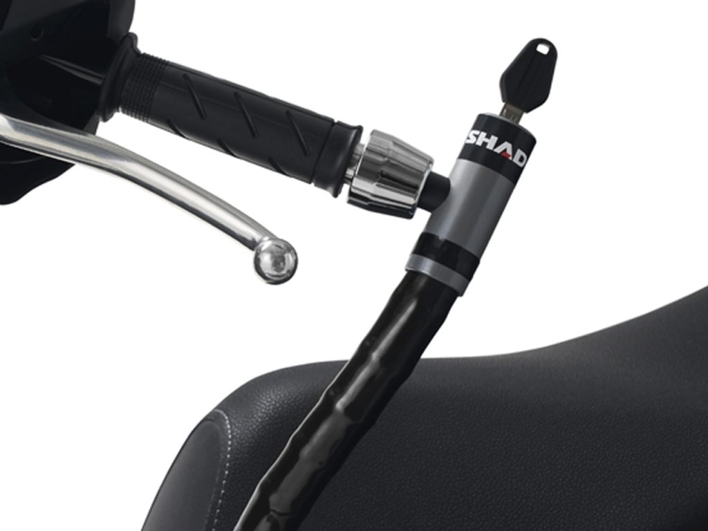 Zámky SHAD, SERIE 2: zámek na řídítka skútru, který se kombinuje s konkrétní montážní sadou přímo pro váš skútr. Sada zámku na řídítka ""SERIE 2"" pro váš motocykl je ideální sadou pro každodenní jízdy po městě nebo mezi městy.